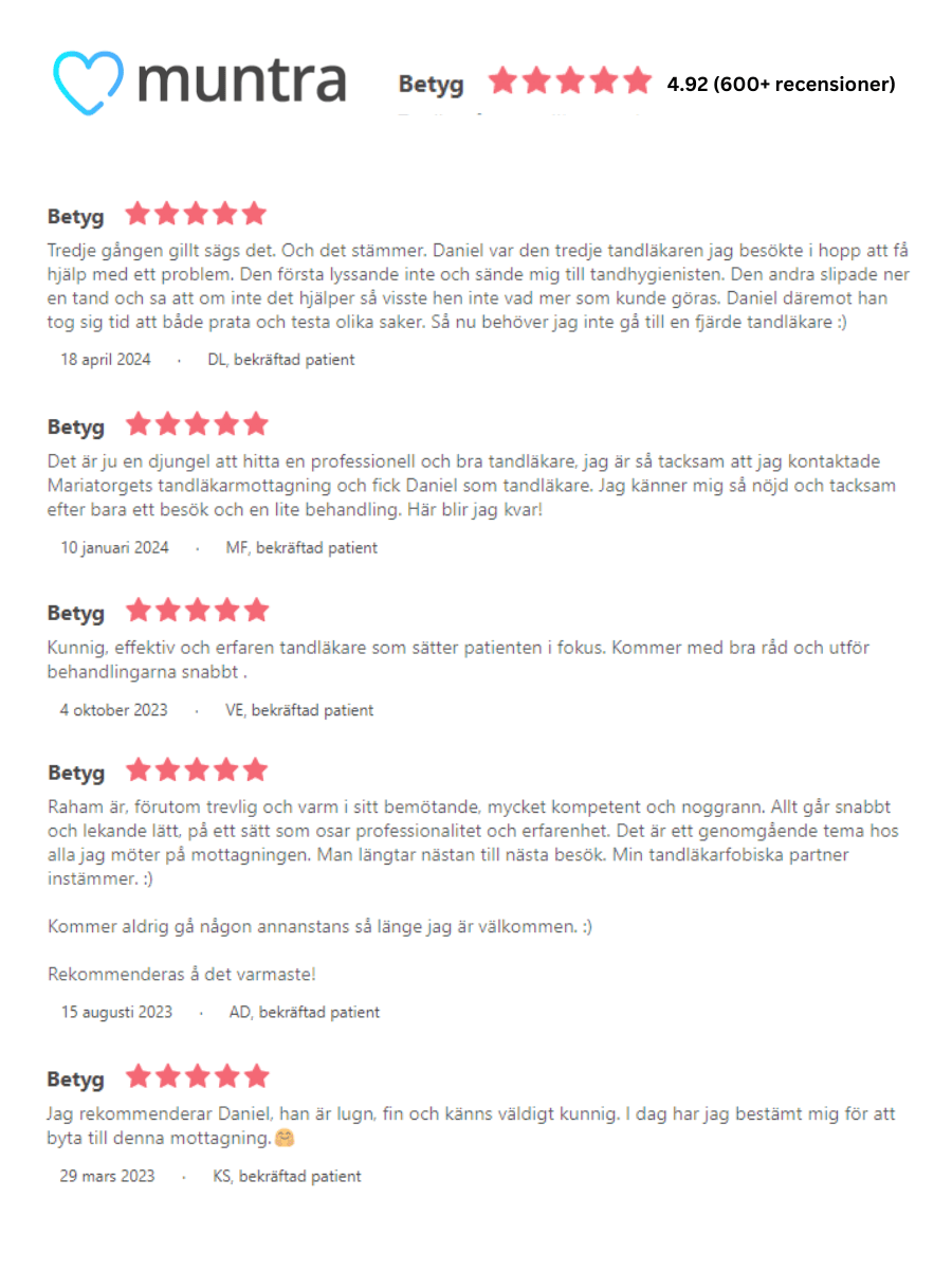 Vi på Mariatorgets Tandläkarmottagning vill ge alla möjligheten att äta och le utan bekymmer.